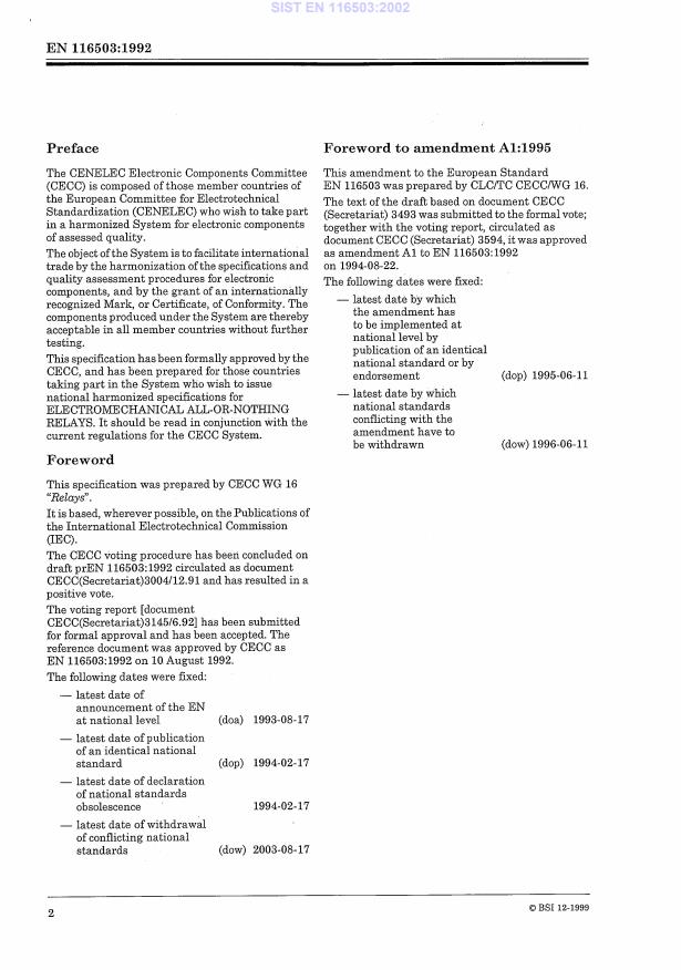 2003-01.Slovenski inštitut za standardizacijo. Razmnoževanje celote ali delov tega standarda ni dovoljeno.Blank Detail Specification: Electromechanical all-or-nothing TELECOM relays of assessed quality, dual-in-line, with 14 x 9 mm baseVordruck für Bauartspezifikation: Gütebestätigte elektromechanische Dual-in-line TELEKOM-Relais mit 14 x 9 mm GrundflächeSpécification particulière cadre: Relais électromécaniques de tout-ou-rien TELECOM dual-in-line avec une surface d'encombrement de 14 x 9 mm, soumis au régime d'assurance de la qualitéBlank Detail Specification: Electromechanical all-or-nothing TELECOM relays of assessed quality, dual-in-line, with 14 x 9 mm base29.120.70RelejiRelaysICS:Ta slovenski standard je istoveten z:EN 116503:1992SIST EN