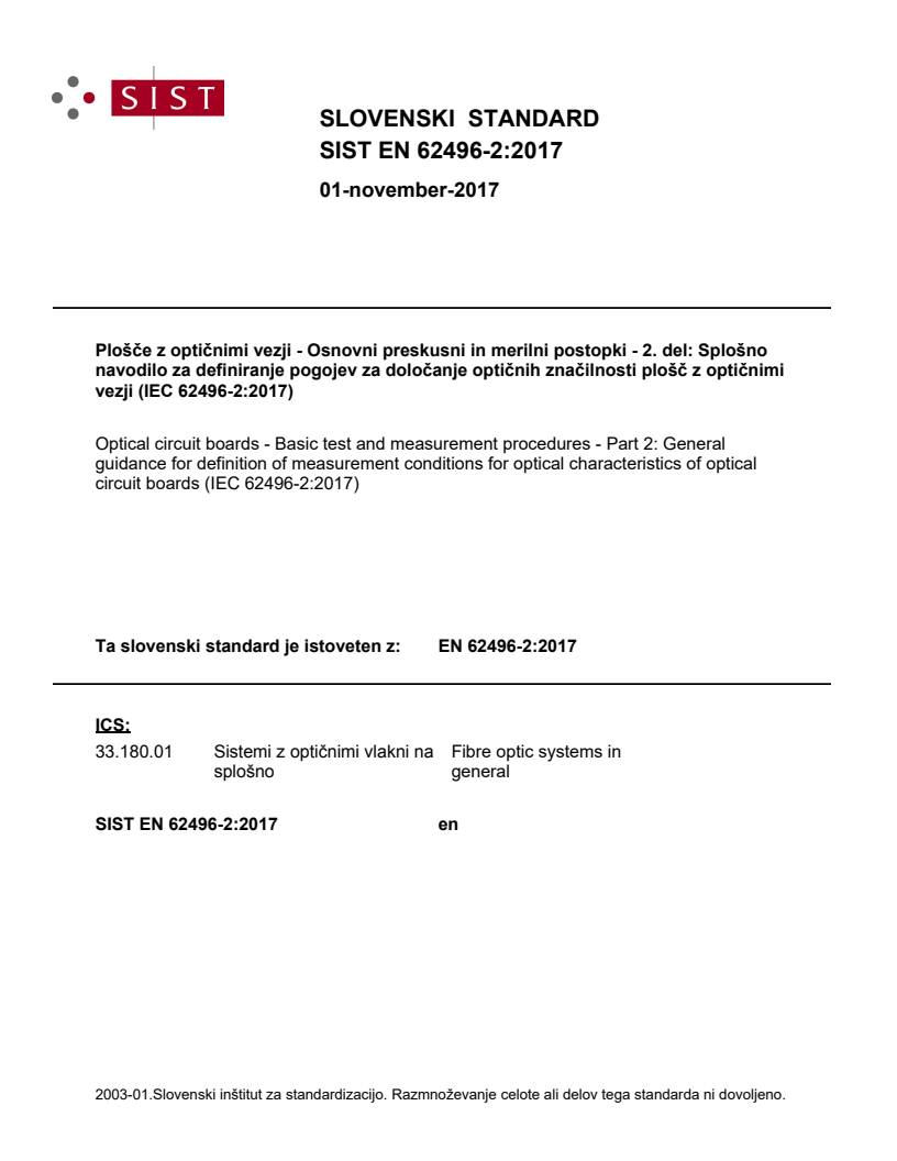 Ta slovenski standard je istoveten z: EN 62496-2:2017