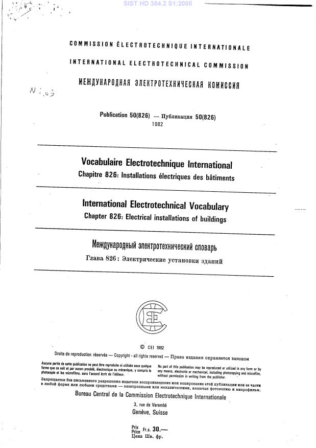 enakovredno mednarodnemu standardu IEC 60050(826):1982, dopolnilo HD 384.2 S1/A1:1993 je