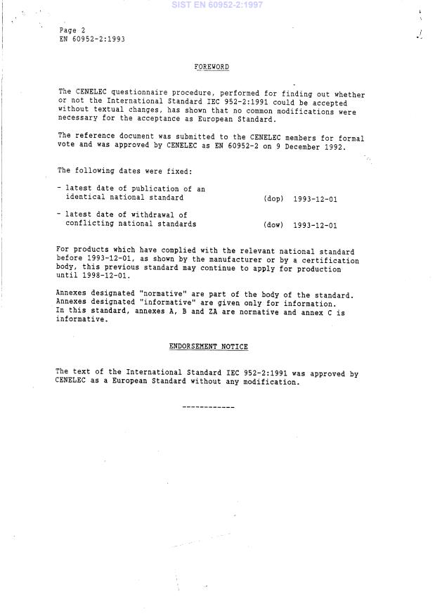 Ta slovenski standard je istoveten z: EN 60952-2:1993