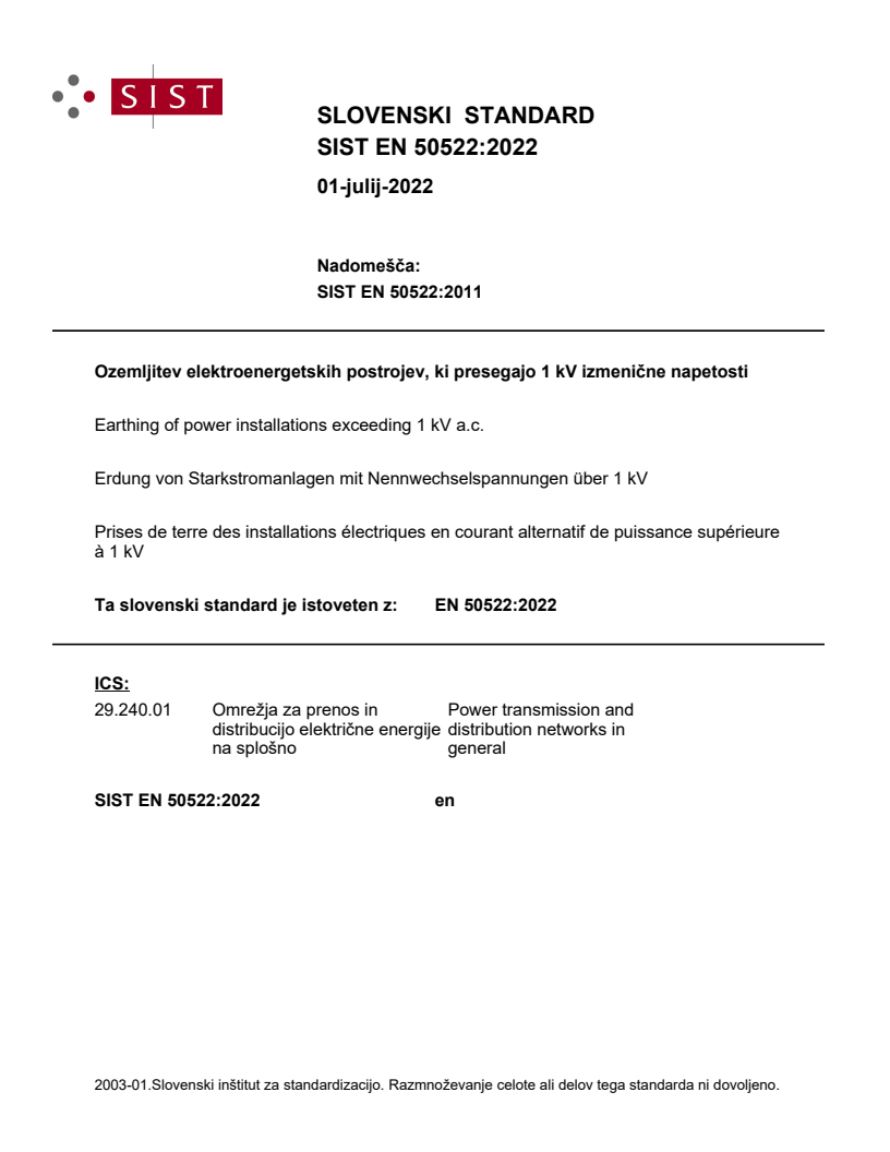 OPOMBA 3: Zahteve za načrtovanje in postavitev ozemljitvenih sistemov nadzemnih električnih vodov določajo standardi skupine EN 50341 – Nadzemni električni vodi za izmenične napetosti nad 1 kV.