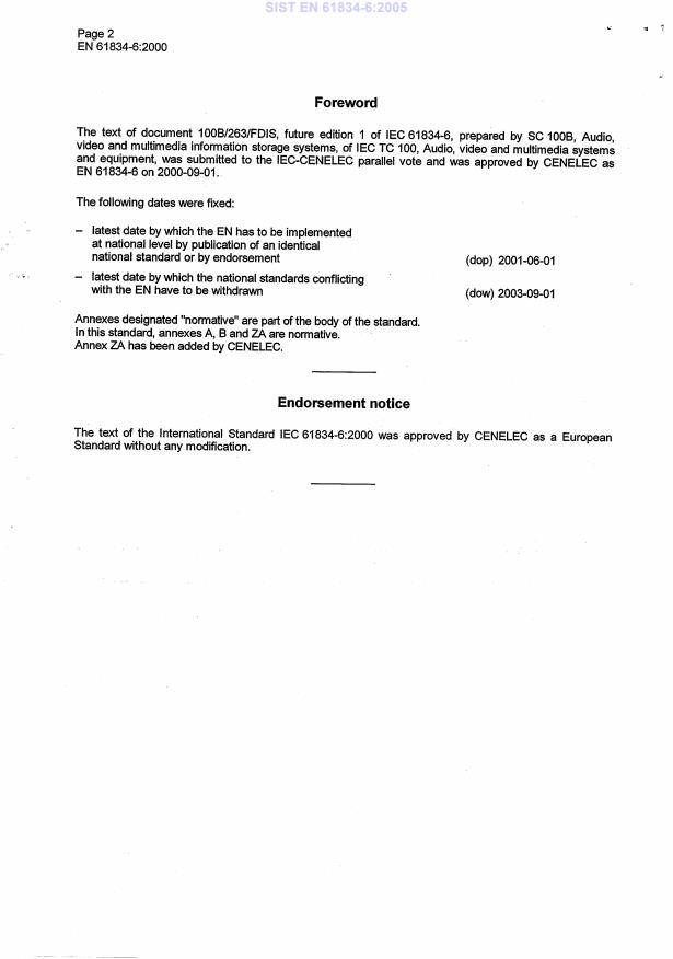 - National adoptions (this document is the European/CENELEC adoption of IEC 61834-6).