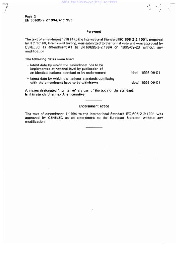 Ta slovenski standard je istoveten z: EN 60695-2-2:1994/A1:1995