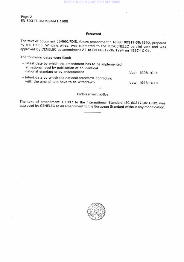EN 60317-35:1994/A1:1998 is classified under the following ICS (International Classification for Standards) categories: 29.060.10 - Wires. The ICS classification helps identify the subject area and facilitates finding related standards.