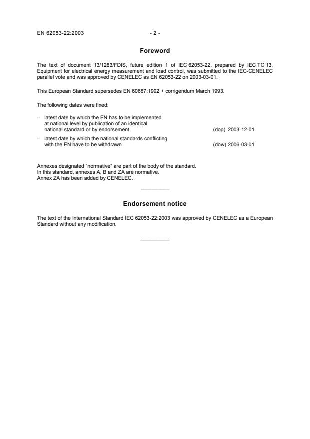 Ta slovenski standard je istoveten z: EN 62053-22:2003