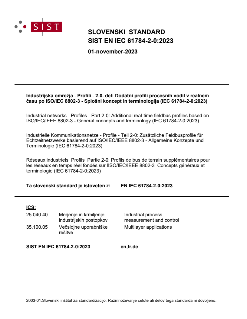 Ta slovenski standard je istoveten z: EN IEC 61784-2-0:2023