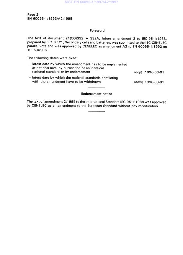 EN 60095-1:1993/A2:1995 is a amendment published by CLC. Its full title is "Lead-acid starter batteries - Part 1: General requirements and methods of test". This standard covers: EN following parallel vote * Superseded by EN 50342:2001