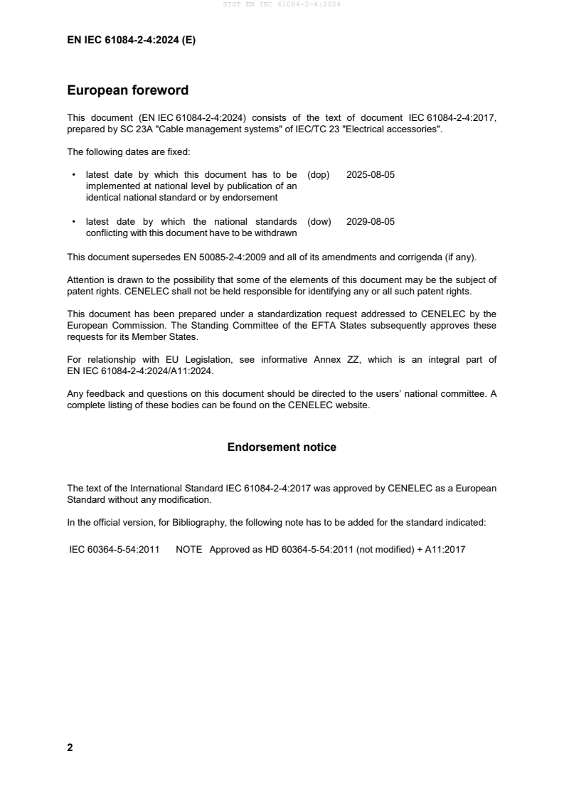 - Regulatory bodies aligning national standards with CENELEC requirements (this edition supersedes EN 50085-2-4:2009).