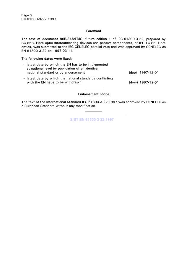 Ta slovenski standard je istoveten z: EN 61300-3-22:1997