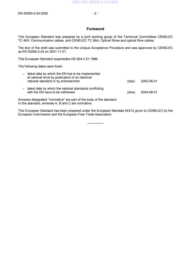 Ta slovenski standard je istoveten z: EN 50290-2-24:2002