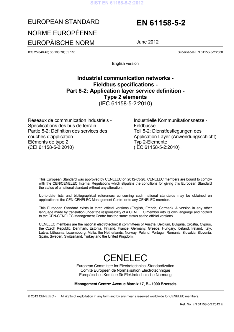 ICS 25.040.40; 35.100.70; 35.110 Supersedes EN 61158-5-2:2008