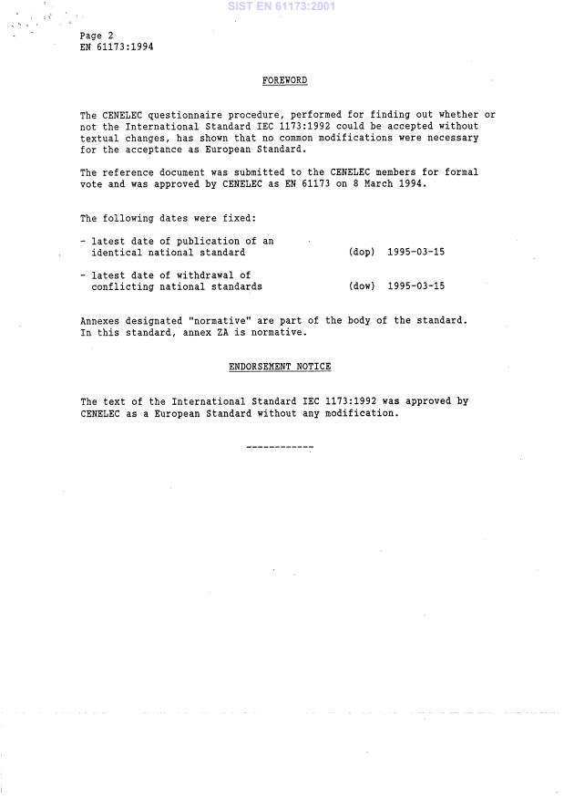 Ta slovenski standard je istoveten z: EN 61173:1994