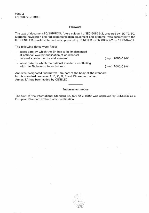 EN 60872-2:1999 is classified under the following ICS (International Classification for Standards) categories: 33.060.01 - Radiocommunications in general; 47.020.70 - Navigation and control equipment. The ICS classification helps identify the subject area and facilitates finding related standards.