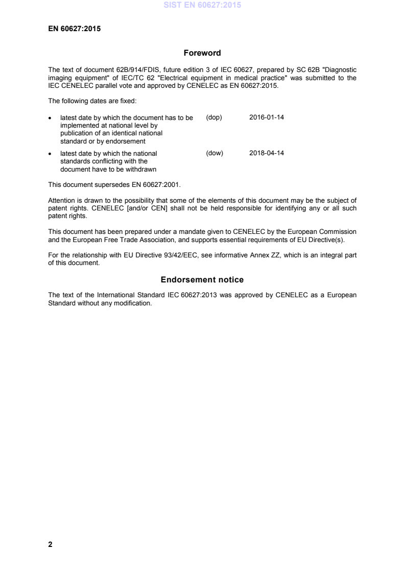 - EN 60627:2015 supports conformity with relevant EU medical device requirements (see Annex ZZ for relationship to Directive 93/42/EEC)