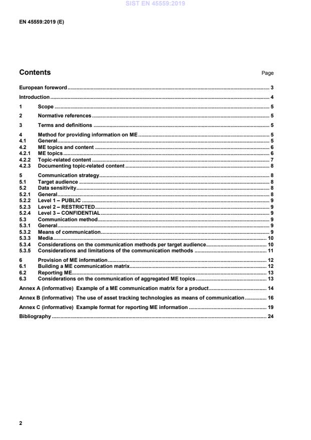 Example format for reporting ME information . 19 Bibliography . 24 SIST EN 45559:2019