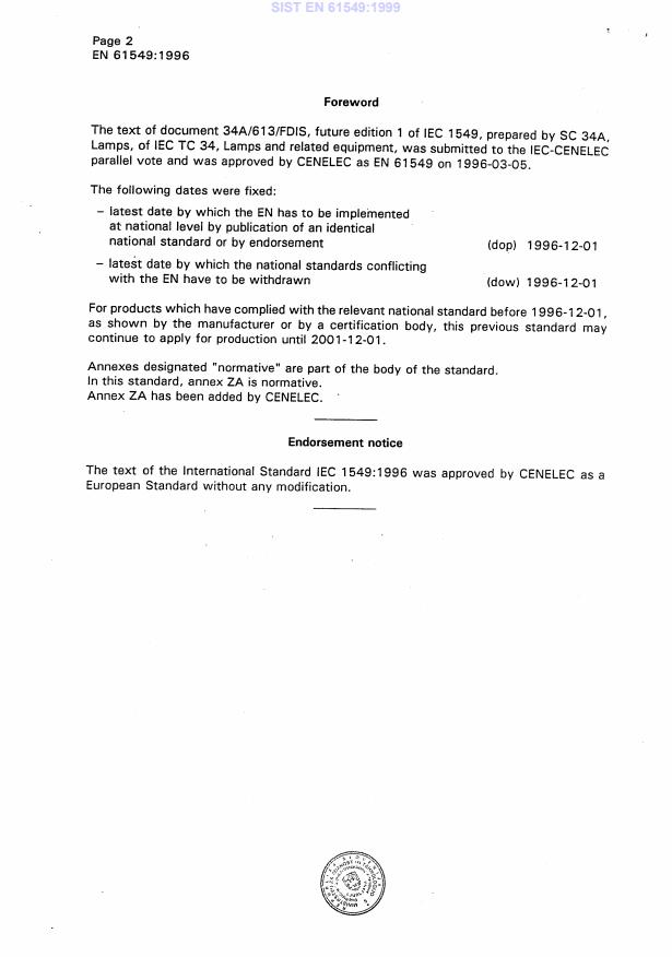 EN 61549:2003 - Miscellaneous lamps - Effective Date