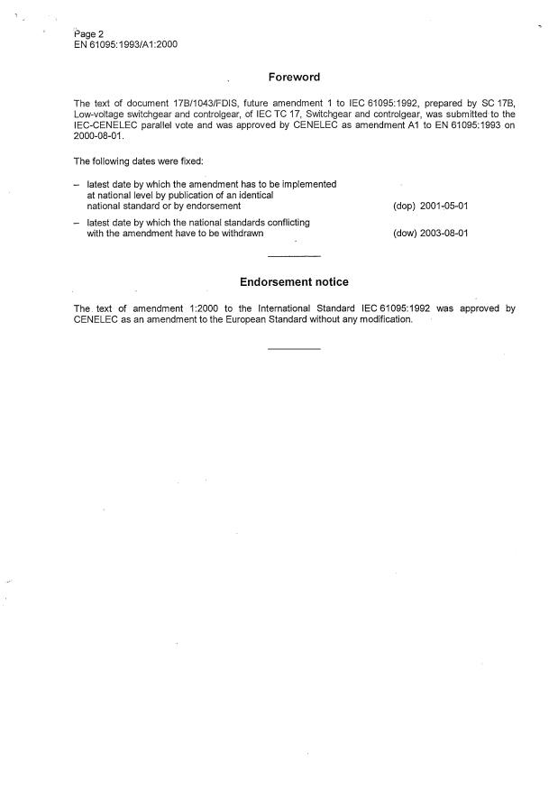 EN following parallel vote * Corrigendum to A1 issued April 2001 * Superseded by EN 61095:2009