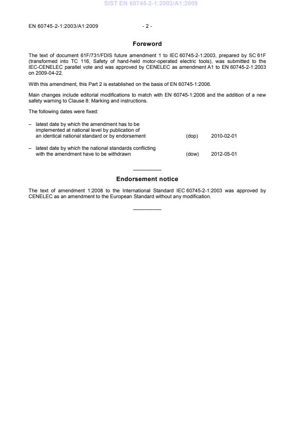IEC-CENELEC parallel vote and was approved by CENELEC as amendment A1 to EN 60745-2-1:2003