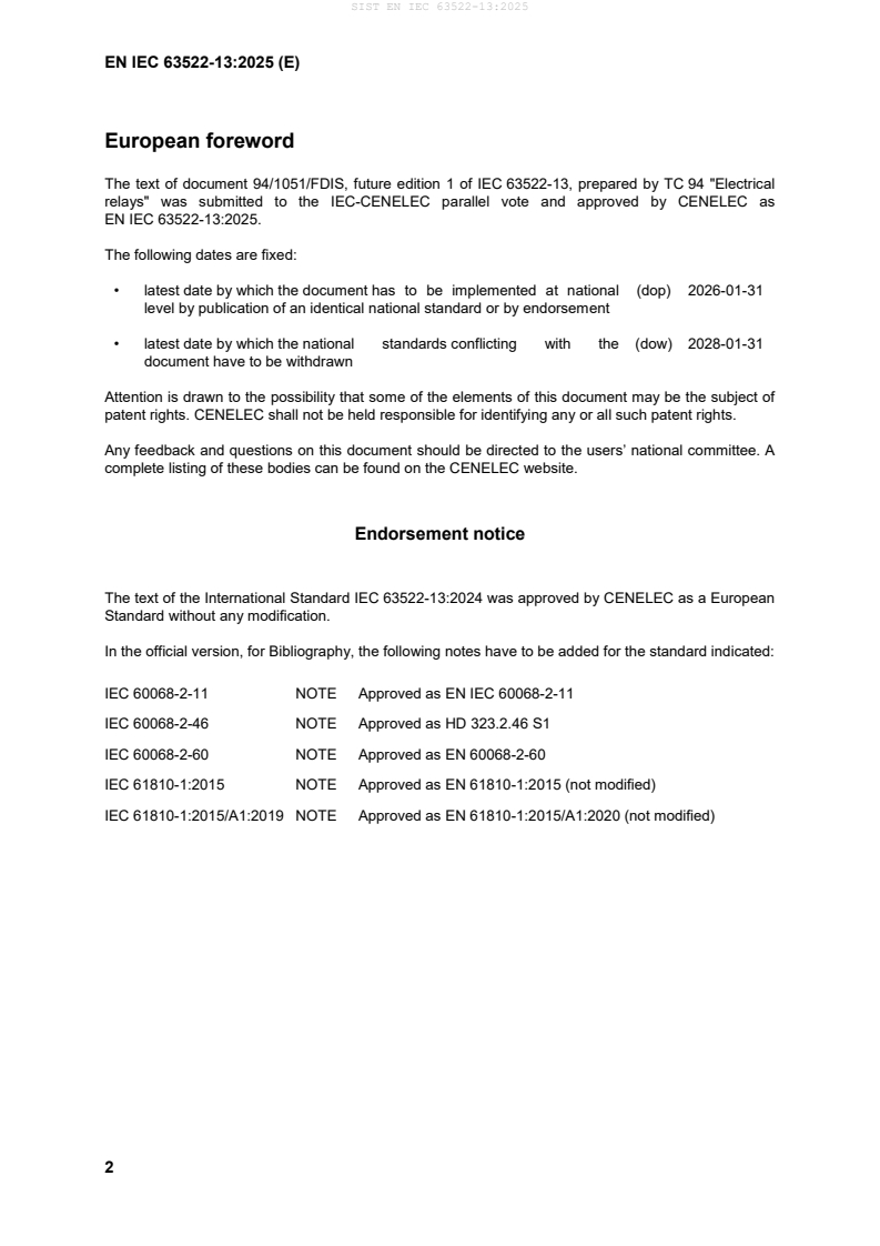 prEN IEC 63522-0:2025 - Electrical relays - Tests and measurements - Part 0: General and guidance - Effective Date