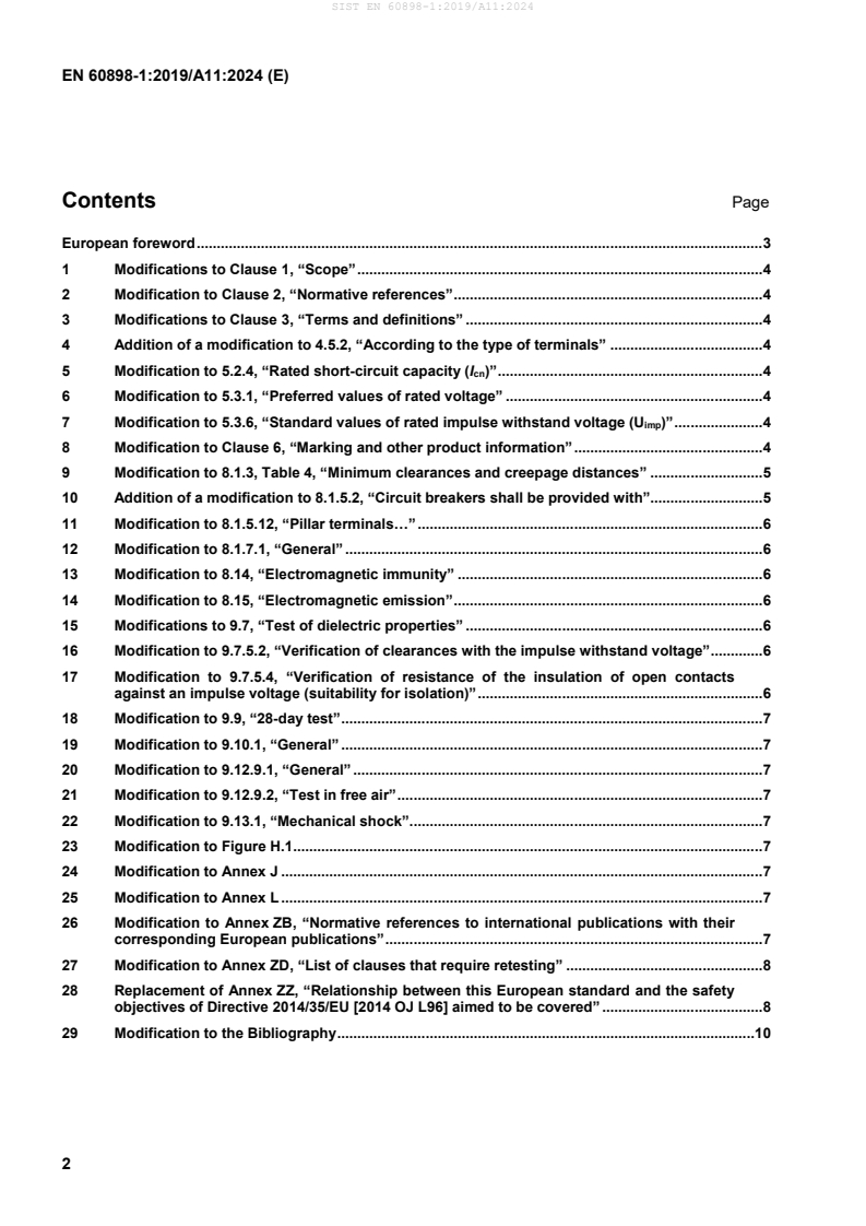 This amendment A11 modifies the European Standard EN 60898-1:2019; it was approved by CENELEC on 2024-04-22. CENELEC