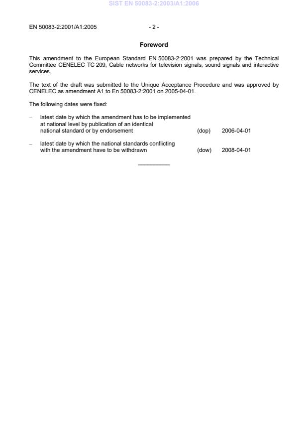 This amendment to the European Standard EN 50083-2:2001 was prepared by the Technical