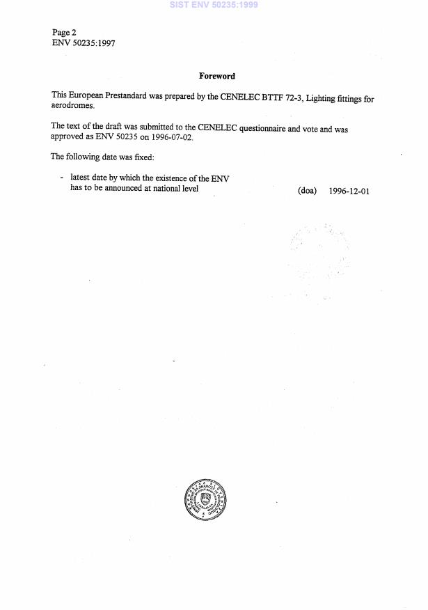 ENV 50235:1997 is classified under the following ICS (International Classification for Standards) categories: 93.120 - Construction of airports. The ICS classification helps identify the subject area and facilitates finding related standards.
