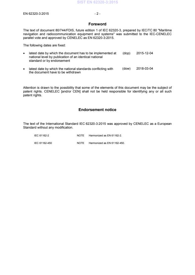 Keywords: EN 62320-3:2015, AIS Simplex Repeater Station, AIS repeater, Automatic Identification System, performance requirements, methods of testing, IMO, ITU‑R M.1371, IALA A‑124.