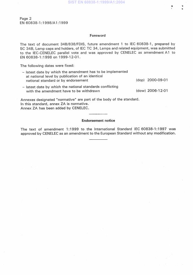EN 60838-1:1998/A1:1999 is a amendment published by CLC. Its full title is "Miscellaneous lampholders - Part 1: General requirements and tests". This standard covers: EN following parallel vote * Superseded by EN 60838-1:2004