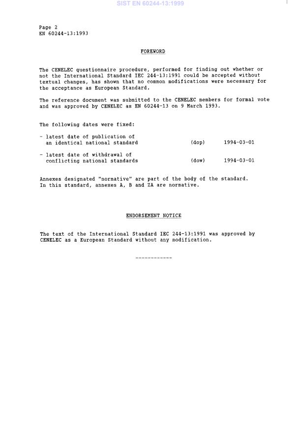 Ta slovenski standard je istoveten z: EN 60244-13:1993