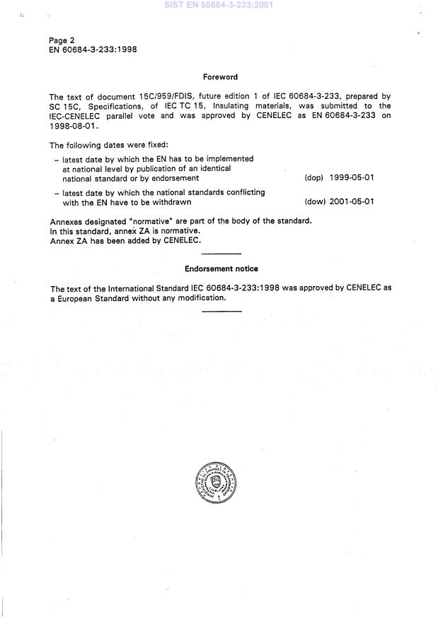 Ta slovenski standard je istoveten z: EN 60684-3-233:1998