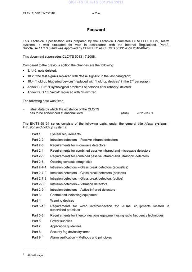 ICS 13.310 Supersedes CLC/TS 50131-7:2008