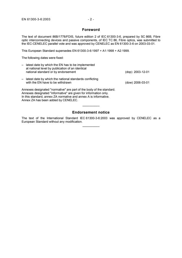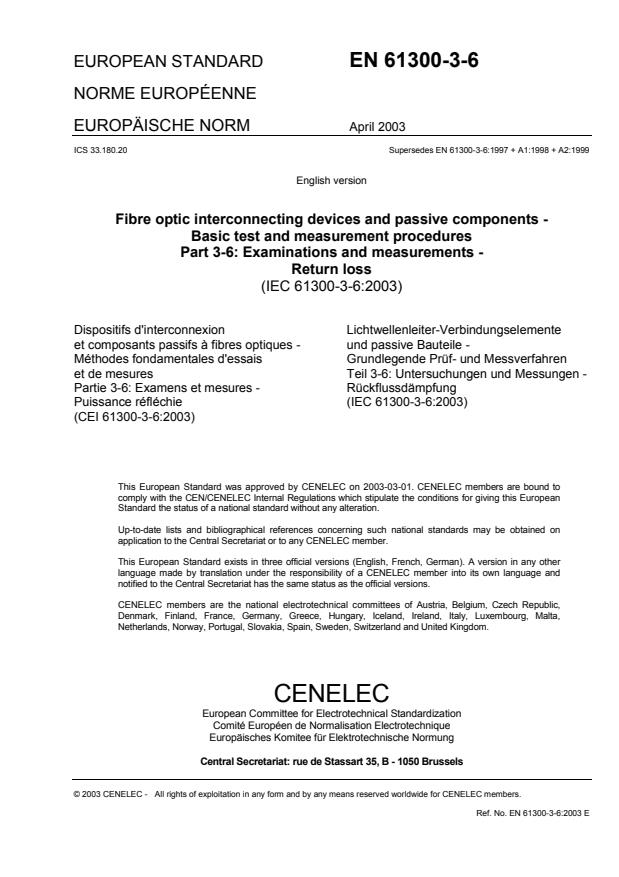the IEC-CENELEC parallel vote and was approved by CENELEC as EN 61300-3-6 on 2003-03-01.