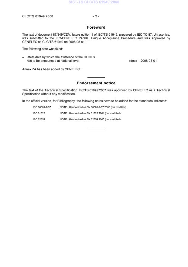 The text of document 87/349/CDV, future edition 1 of IEC/TS 61949, prepared by IEC TC 87, Ultrasonics,
