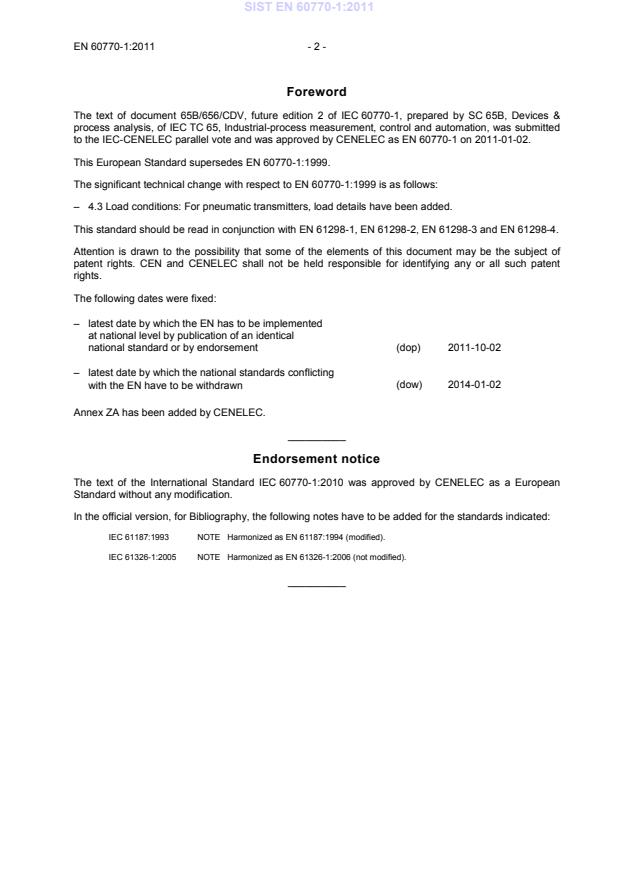 Ta del IEC 60770 velja za oddajnike, ki imajo ali standardni analogni električni tokovni izhodni signal ali standardni pnevmatični analogni izhodni signal v skladu z IEC 60381-1 ali IEC 60382. Preskusi, ki so tukaj podrobno opisani, se lahko uporabijo za oddajnike, ki imajo druge izhodne signale, pod pogojem, da se ustrezno upoštevajo te razlike. Za vrednotenje inteligentnih oddajnikov glej IEC 60770-3. Za nekatere vrste oddajnikov, kjer je senzor sestavni del, je morda treba upoštevati druge določene standarde IEC ISO (npr. za kemične analizatorje, merilnike pretoka itd). Ta standard je namenjen določevanju enotnih metod preskušanja za vrednotenje