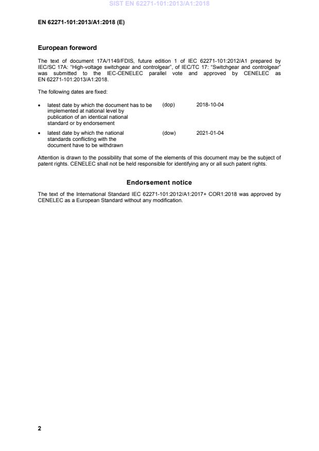 This amendment A1 modifies the European Standard EN 62271-101:2013; it was approved by CENELEC on 2018-01-04. CENELEC