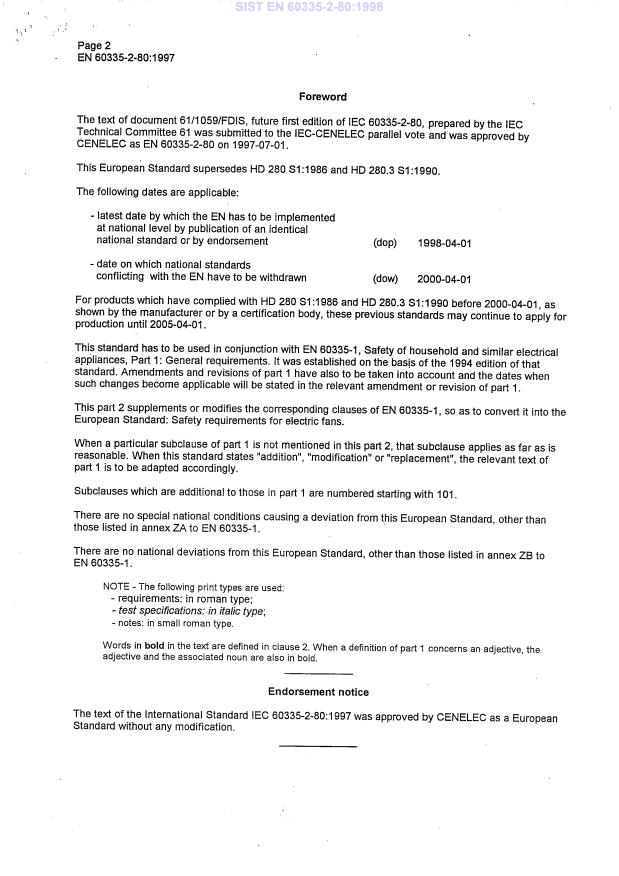 Varnost gospodinjskih in podobnih električnih aparatov - 2-80. del: Posebne zahteve za ventilatorje (IEC 60335-2-80:1997)