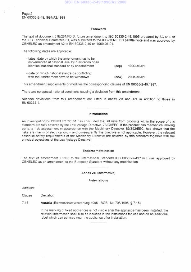 Ta slovenski standard je istoveten z: EN 60335-2-49:1997/A2:1999