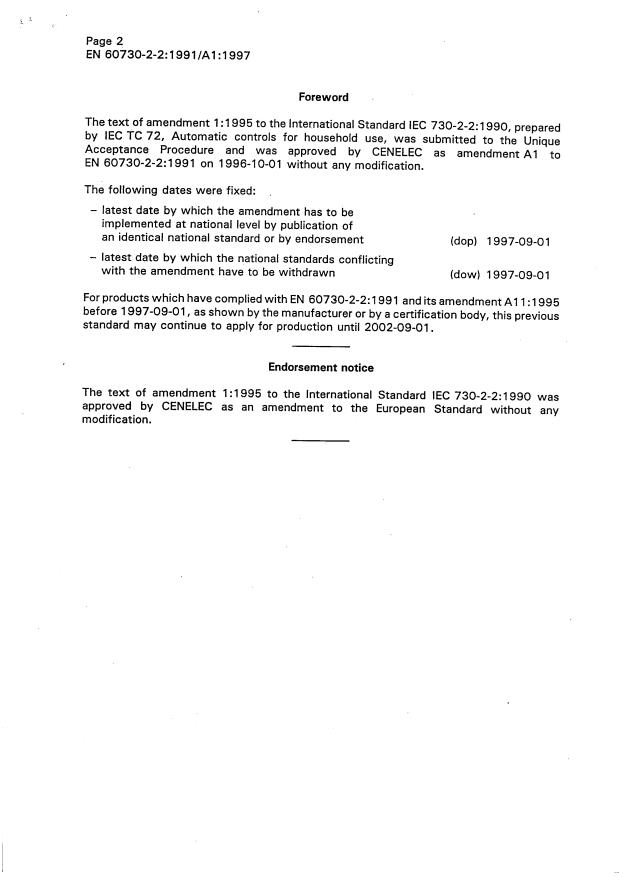 D106/050: New dow * Corrigendum to EN/A1 issued March 2001 * Superseded by EN 60730-2-2:2002