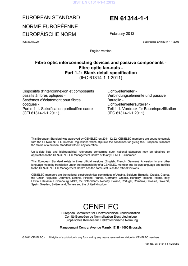 This European Standard was approved by CENELEC on 2011-12-22. CENELEC members are bound to comply
