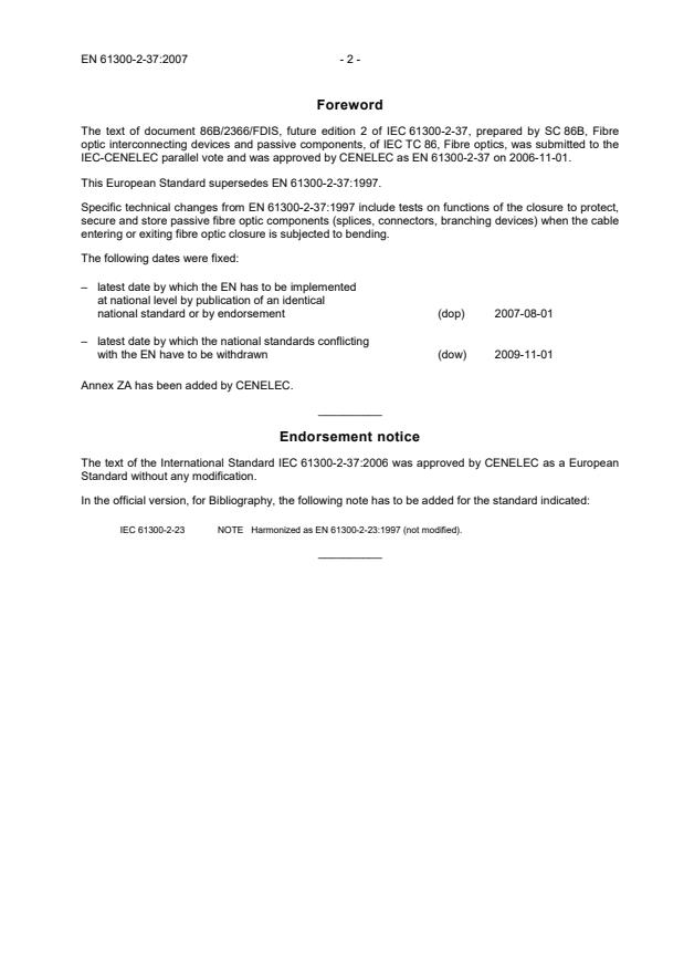 IEC-CENELEC parallel vote and was approved by CENELEC as EN 61300-2-37 on 2006-11-01.