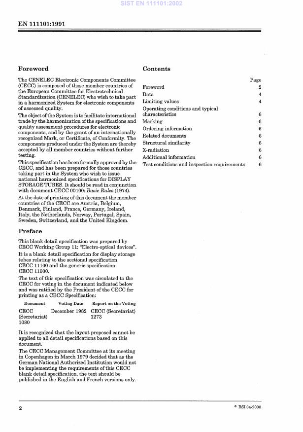 EN 111101:1991 is a standard published by CLC. Its full title is "Blank Detail Specification: Display storage tubes". This standard covers: Supersedes CECC 11 101:1984 * CECC WG 11 work handled by SR 39 * 2013-02-07: Transfer from SR 39 to SR 110 requested by NEN - Situation to be checked