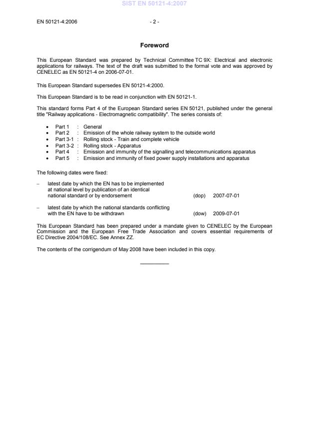 ICS 29.020; 29.280; 45.020 Supersedes EN 50121-4:2000