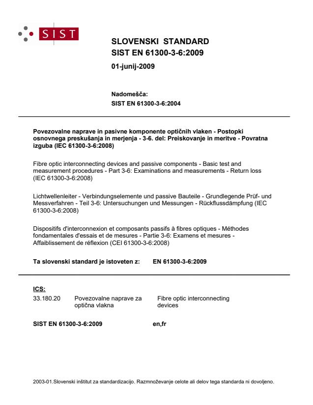 Ta slovenski standard je istoveten z: EN 61300-3-6:2009
