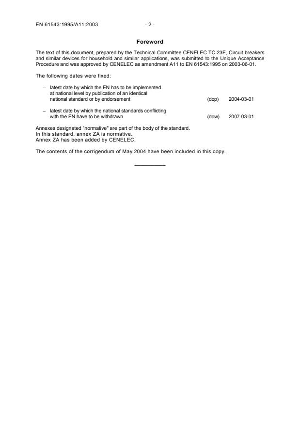 Procedure and was approved by CENELEC as amendment A11 to EN 61543:1995 on 2003-06-01.