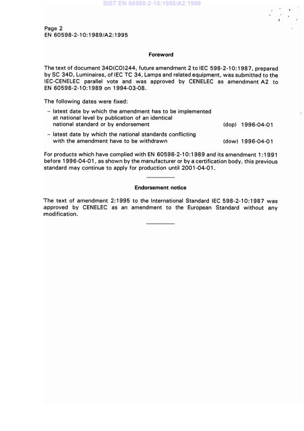 Ta slovenski standard je istoveten z: EN 60598-2-10:1989/A2:1995