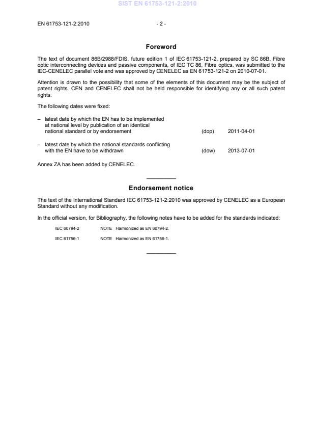IEC-CENELEC parallel vote and was approved by CENELEC as EN 61753-121-2 on 2010-07-01.
