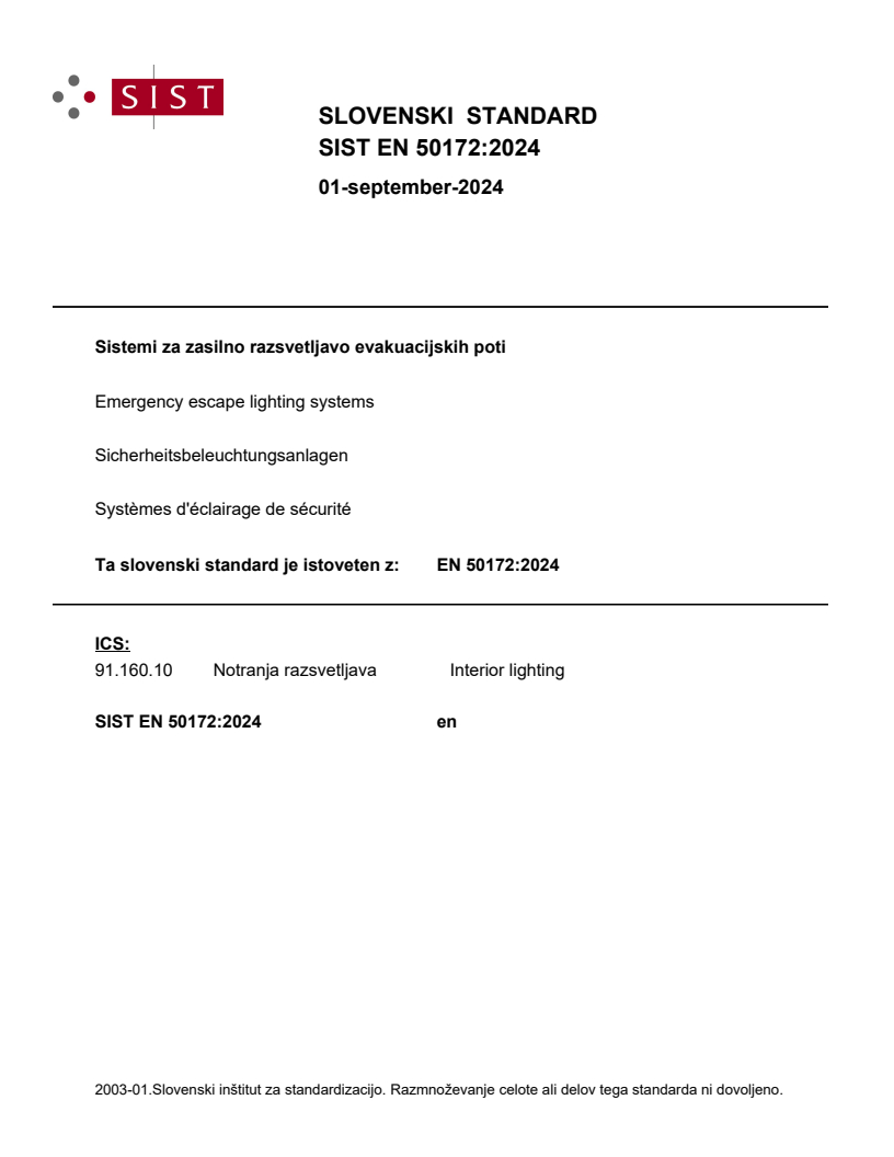 Ta slovenski standard je istoveten z: EN 50172:2024