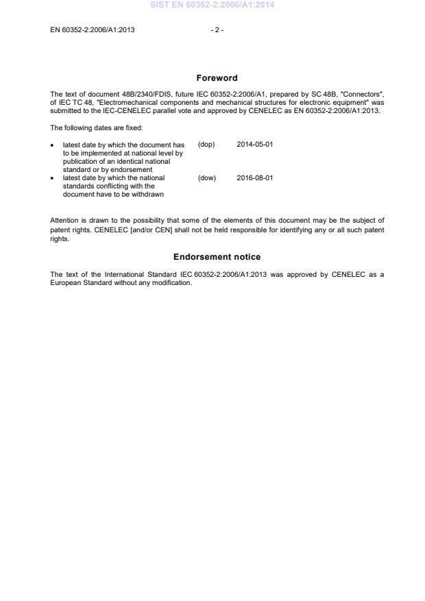 submitted to the IEC-CENELEC parallel vote and approved by CENELEC as EN 60352-2:2006/A1:2013.