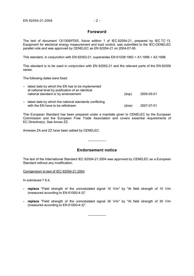 - EN/IEC 62052-21 - General requirements, tests and test conditions for tariff and load control equipment (to be used in conjunction with EN 62054-21).