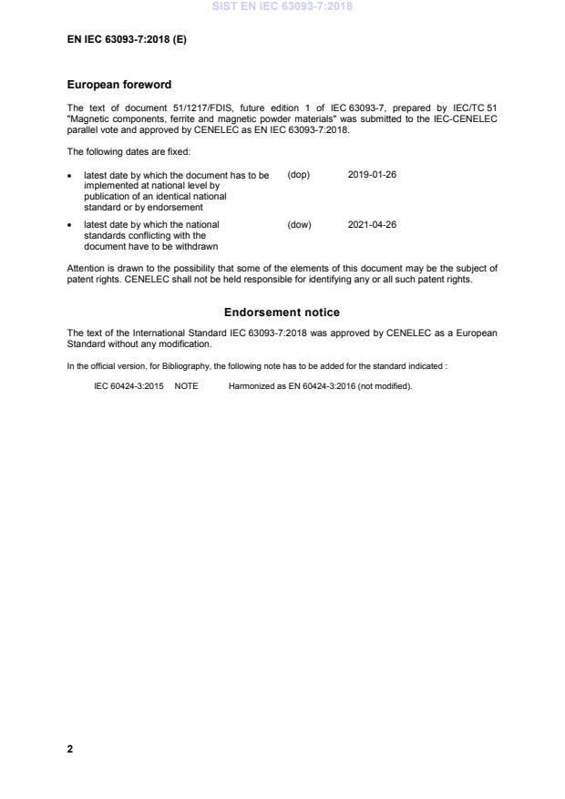 European foreword The text of document 51/1217/FDIS, future edition 1 of IEC 63093-7, prepared by IEC/TC 51 "Magnetic components, ferrite and magnetic powder materials" was submitted to the IEC-CENELEC parallel vote and approved by CENELEC as EN IEC 63093-7:2018.